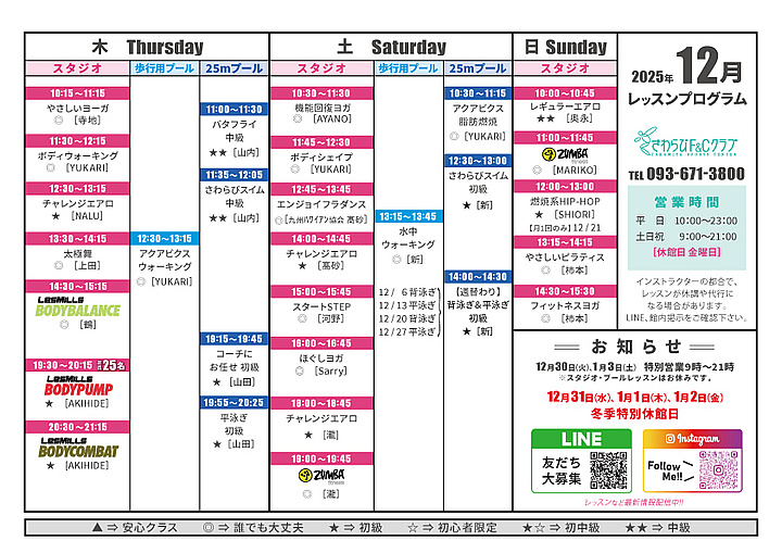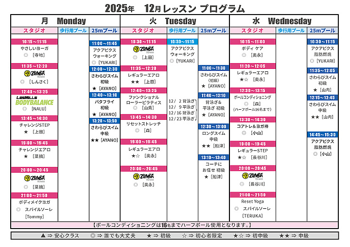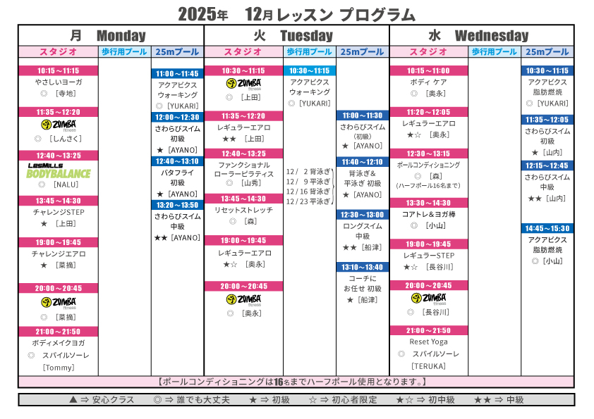 12月のレッスンプログラム