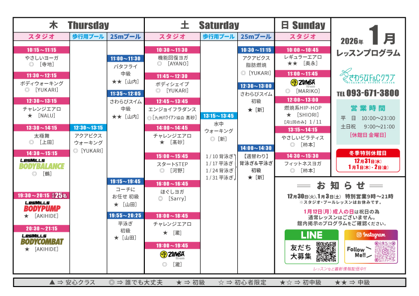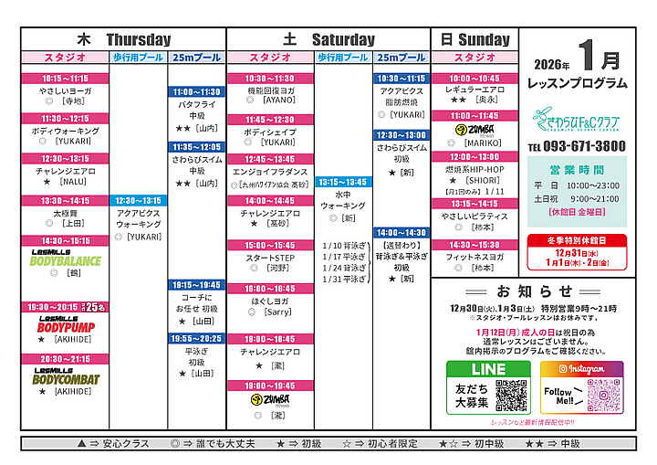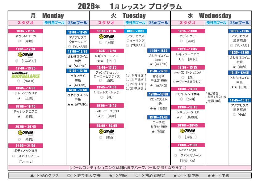 1月のレッスンプログラム
